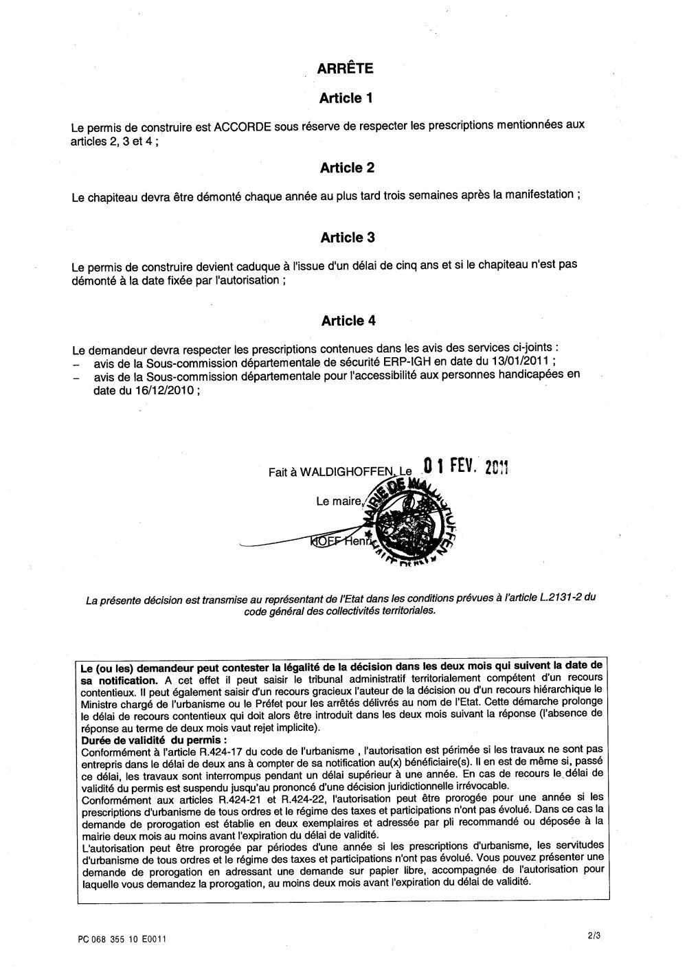Arrêté accordant le permis de construire n°10E0011 du G.B.S.