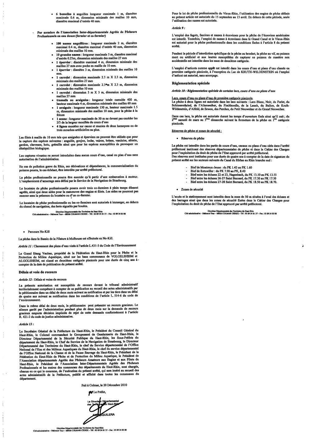 Arrêté préfectoral n° 2010-1570 portant réglementation permanente relative à l'exercice de la pêche en eau douce dans le département du Haut-Rhin.
