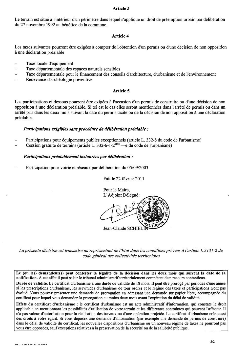 Certificat d'urbanisme n°11E0003 - Me MEURLET-KOHLER