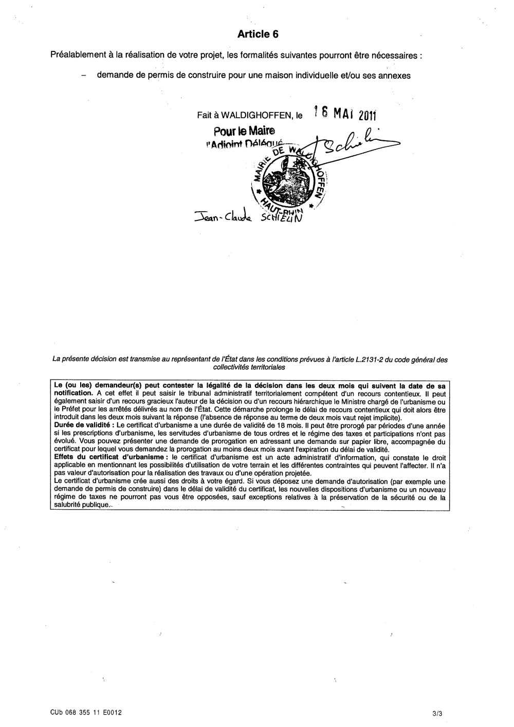 Certificat d'urbanisme n°11E0012 - Me MEURLET-KOHLER