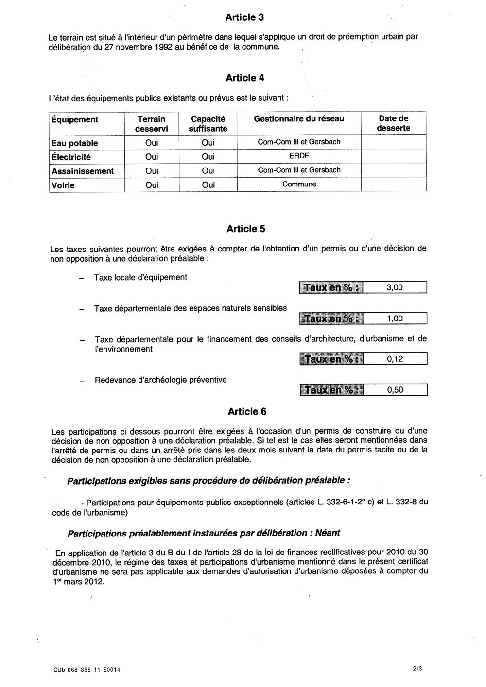 Certificat d'urbanisme opérationnel n°11E0014 - Me Catherine BAEUMLIN
