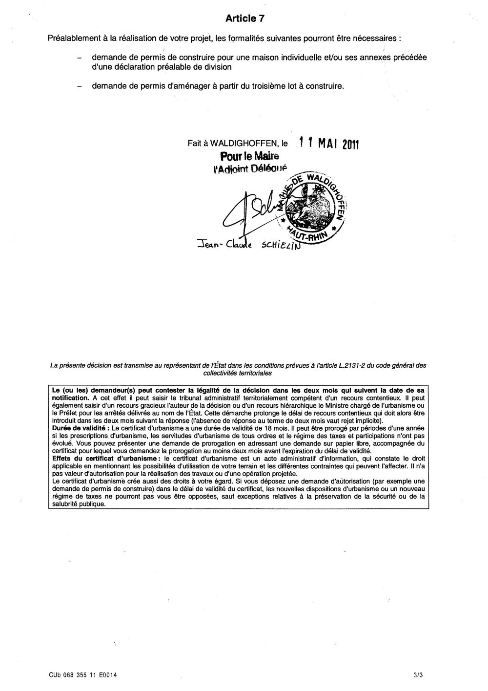 Certificat d'urbanisme opérationnel n°11E0014 - Me Catherine BAEUMLIN