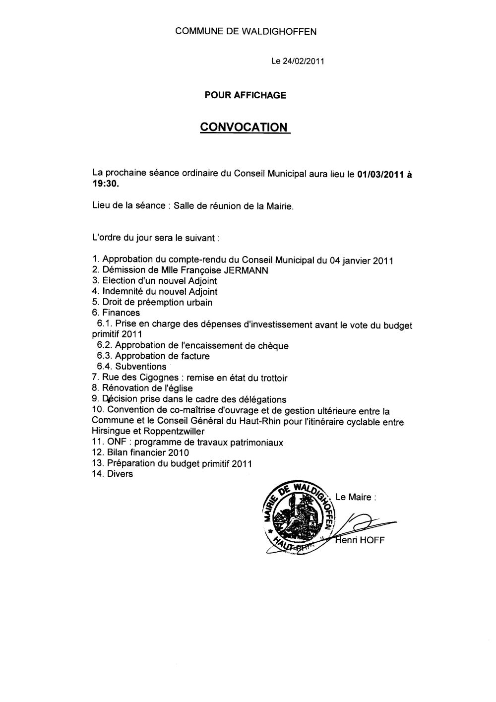 Vous êtes ici : Accueil Mairie Affichage public Annexes affichage public 2011 Conseil municipal le 1er mars 2011