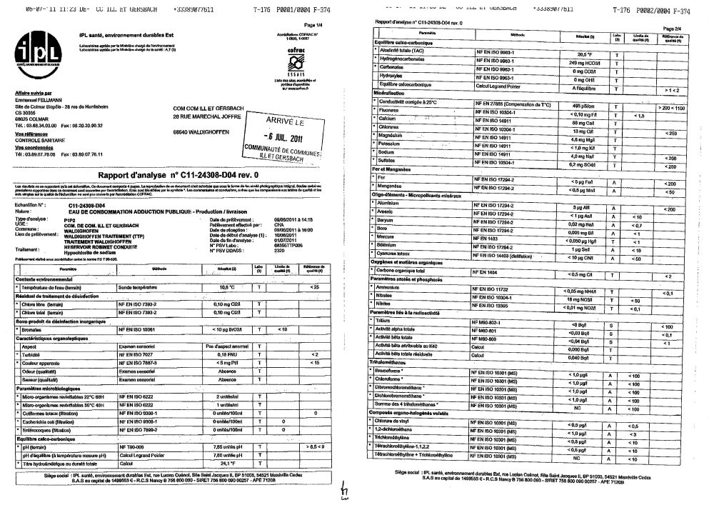 Rapport d'analyse d'eau potable n°C11-24308-D04 du 04/07/2011
