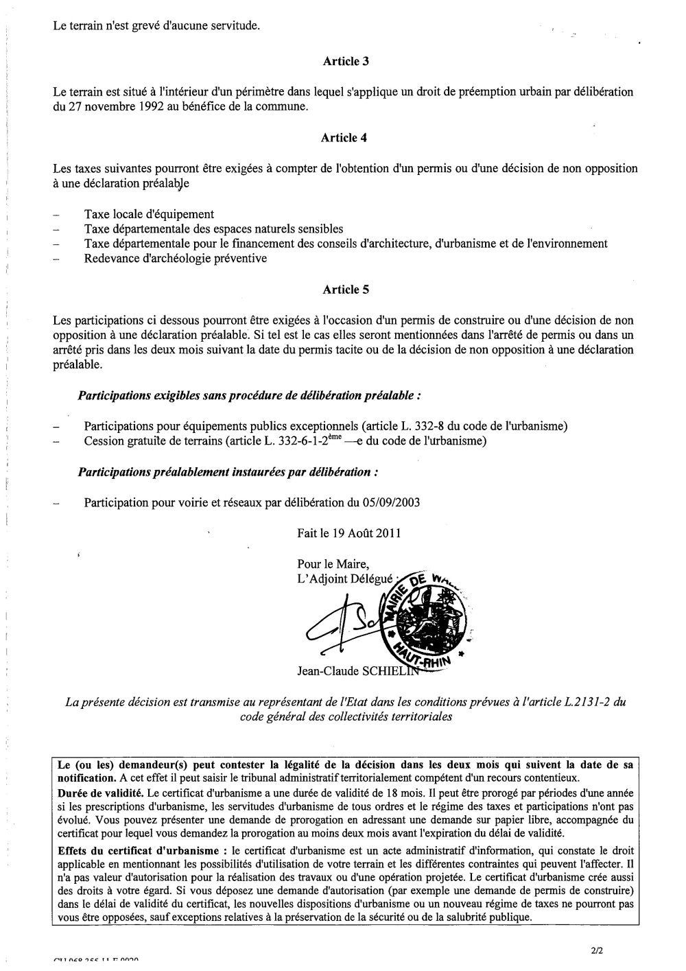 Vous êtes ici : Accueil Mairie Affichage public Annexes affichage public 2011 Certificat d'urbanisme n°11E0020 - M. KOCH Gaston