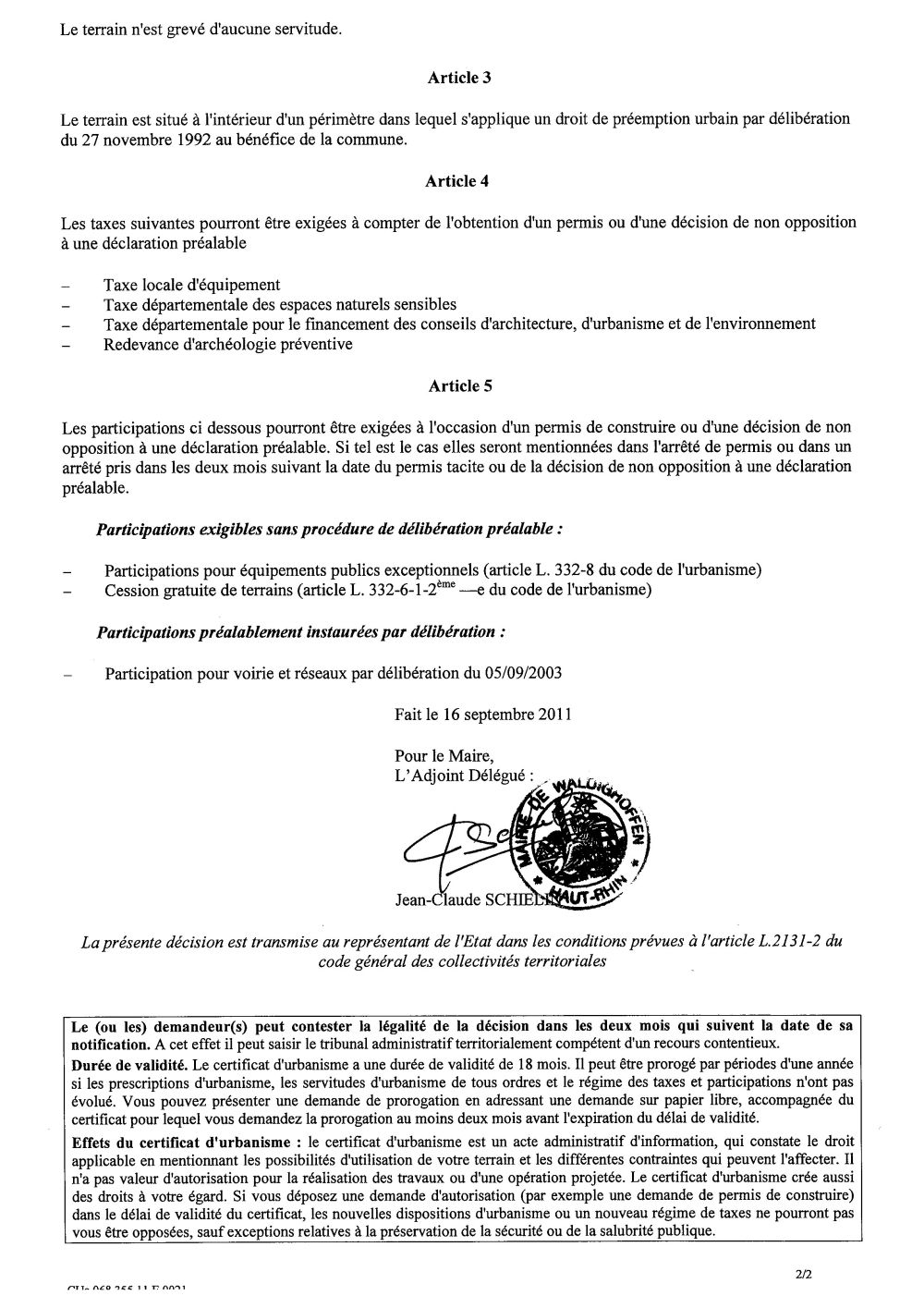 Certificat d'urbanisme n°11E0021 - Me KLEIN