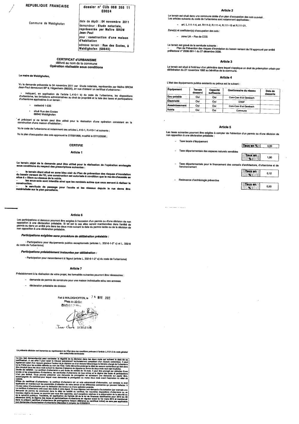 Certificat d'urbanisme n°11E0024 - Me BROM