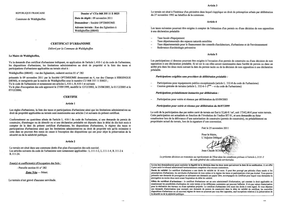 Certificat d'urbanisme n°11E0025 - Société OPTIMHOME