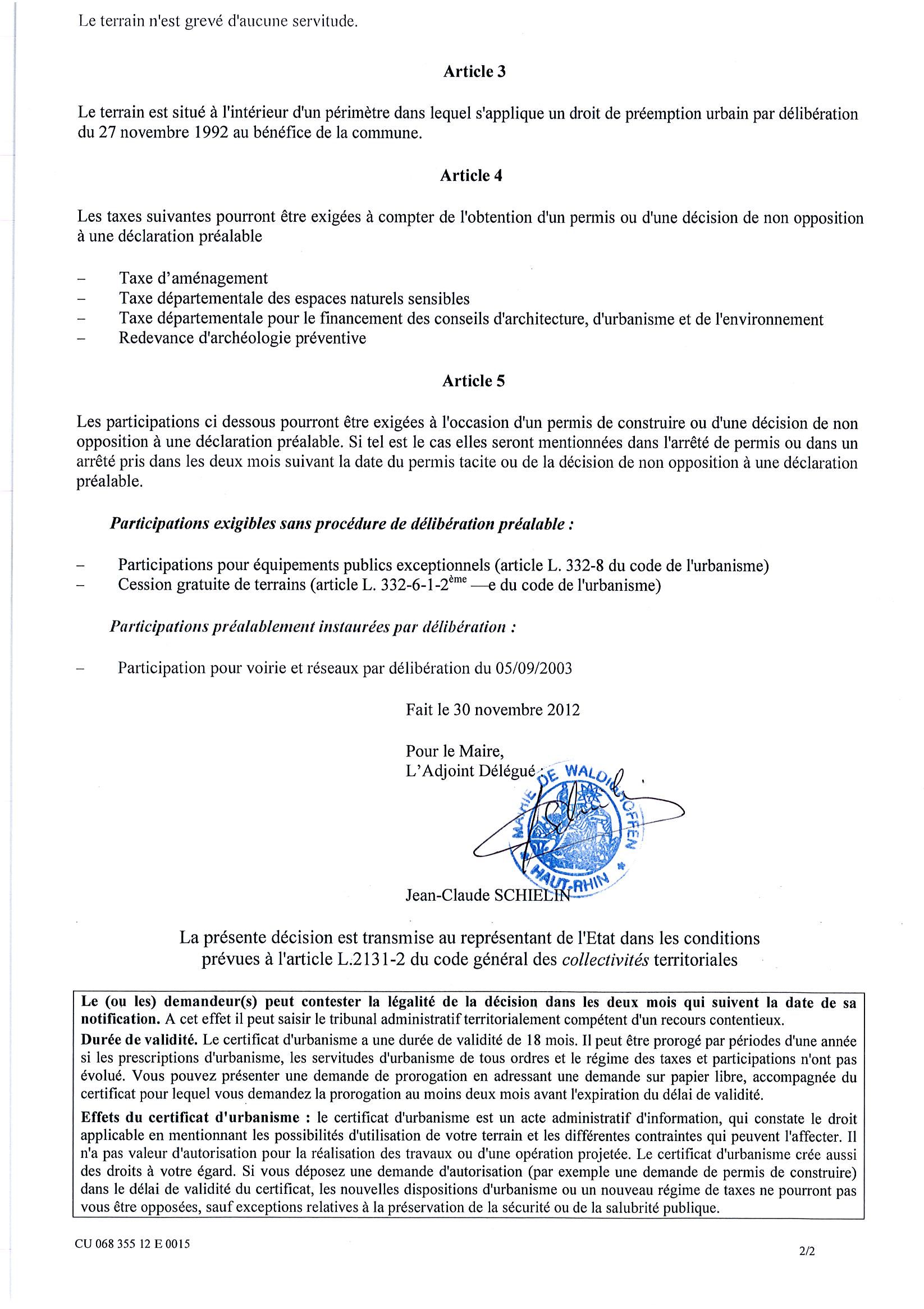 Certificat d'urbanisme n°12E0015 - Me KOENIG