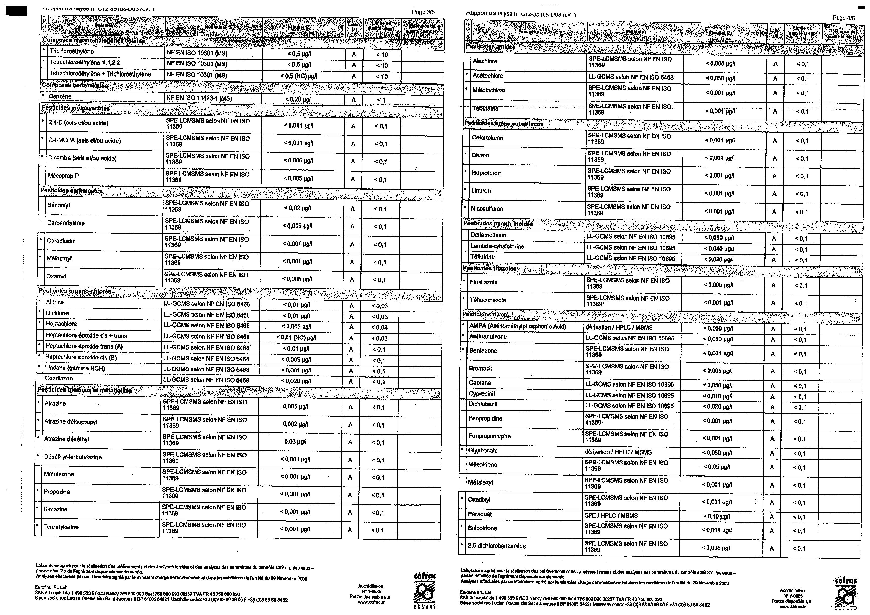Vous êtes ici : Accueil Mairie Affichage public Annexes affichage public 2012 Rapport d'analyse d'eau potable n°C12-35158-D03 du 07/09/2012