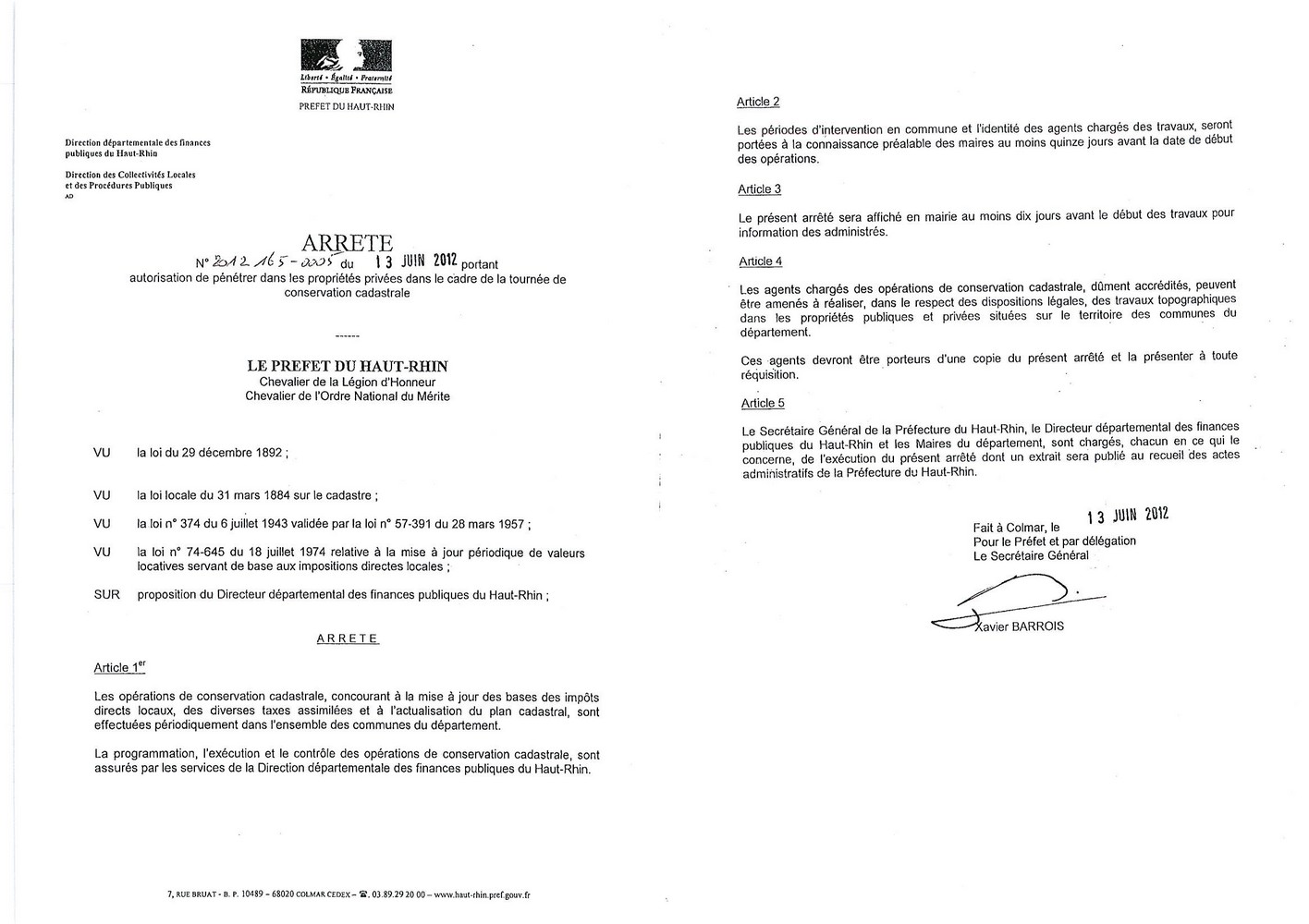 Vous êtes ici : Accueil Mairie Affichage public Annexes affichage public 2013 Arrêté 2012,165,0005 - Tournée de conservation cadastrale