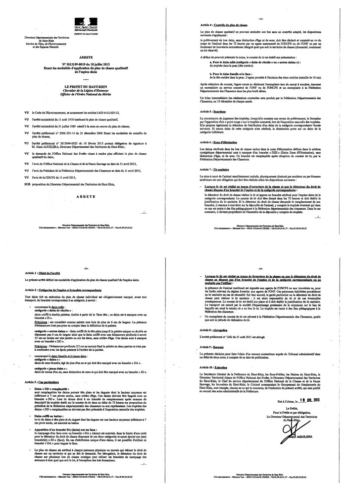 Vous êtes ici : Accueil Mairie Affichage public Annexes affichage public 2013 Arrêté n°2013199.0019 - chasse daim