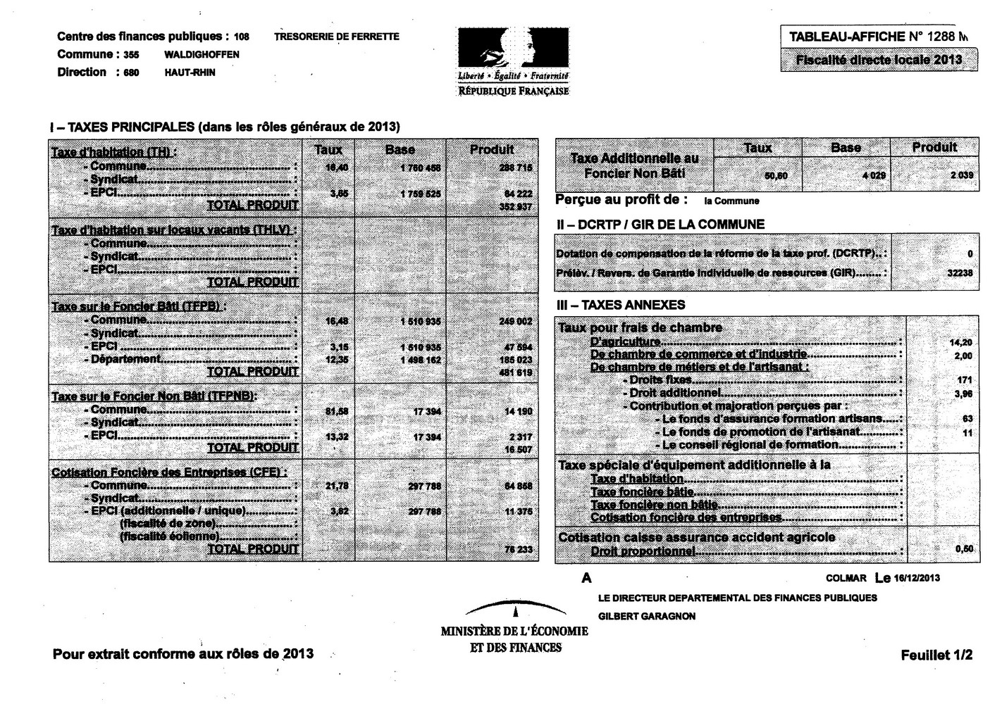 Vous êtes ici : Accueil Mairie Affichage public Annexes affichage public 2013 Fiscalité locale en 2013