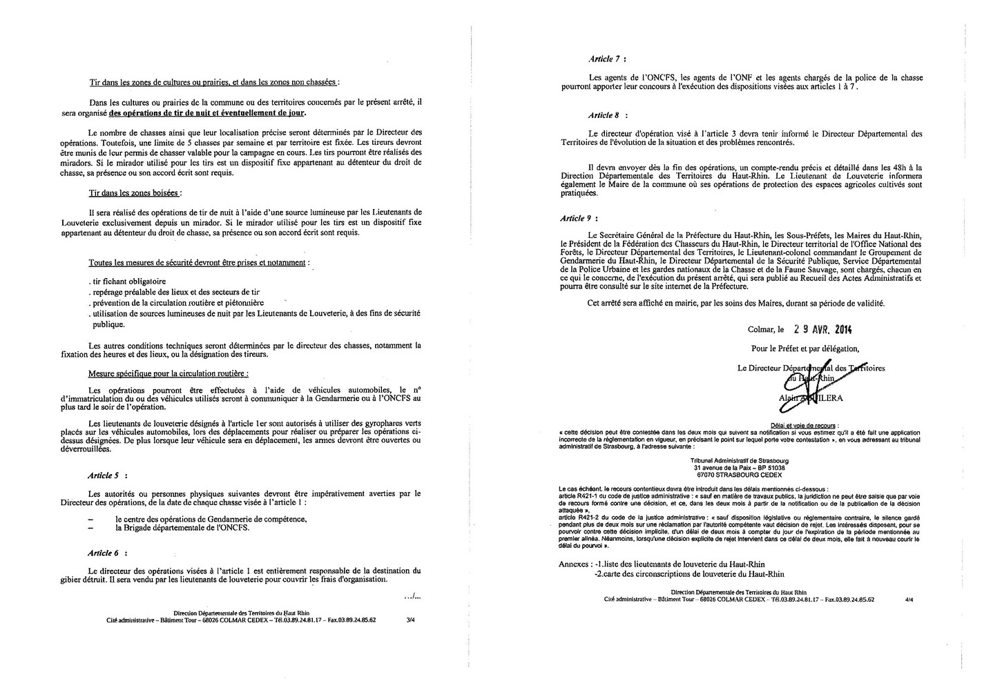 Vous êtes ici : Accueil Mairie Affichage public Annexes affichage public 2014 Arrêté préfectoral - chasse