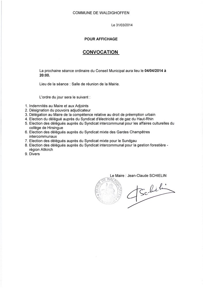 Vous êtes ici : Accueil Mairie Affichage public Annexes affichage public 2014 Convocation Conseil Municipal le 04.04.2014