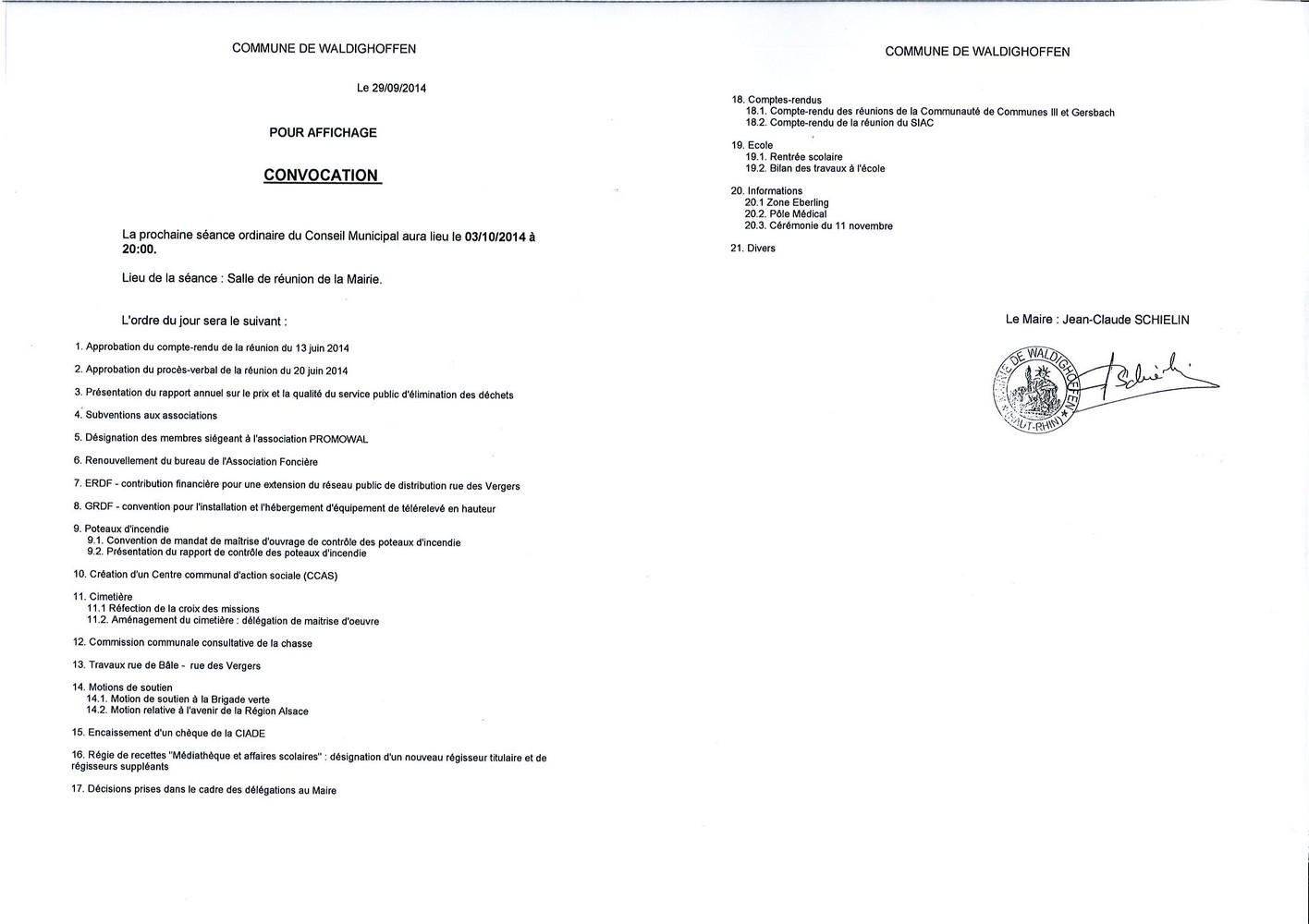 Vous êtes ici : Accueil Mairie Affichage public Annexes affichage public 2014 Convocation du Conseil Municipal le vendredi 03 octobre 2014