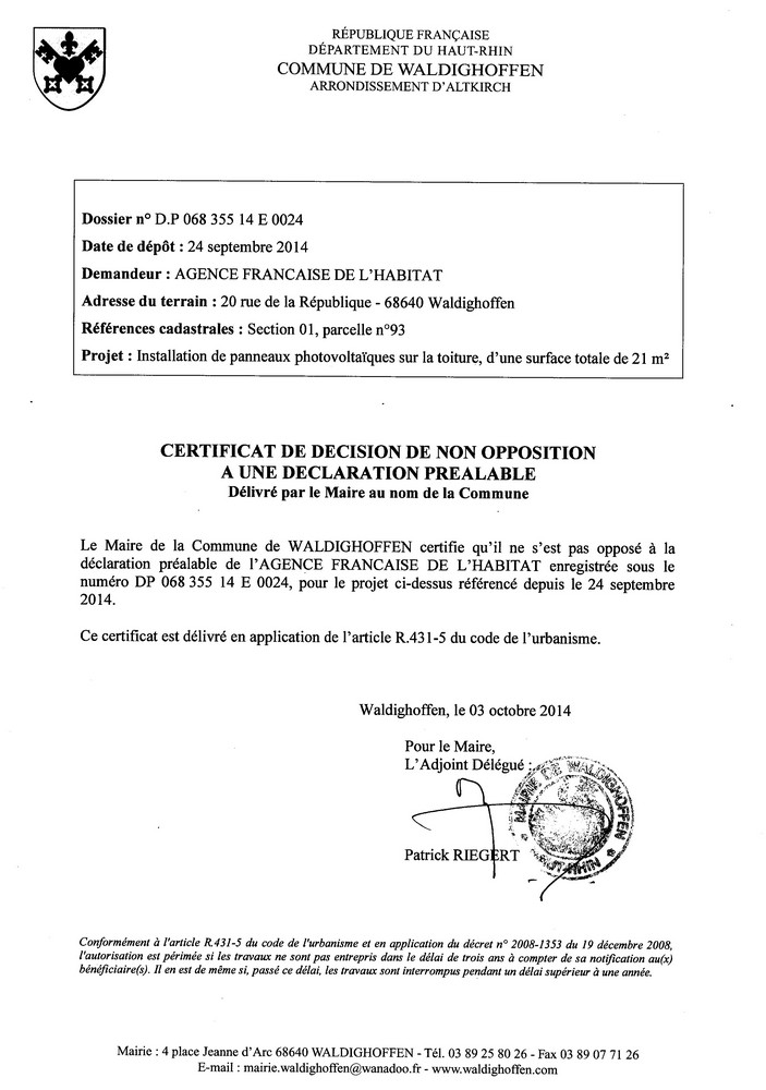 Décision à la déclaration préalable de l'Agence Française de l'Habitat