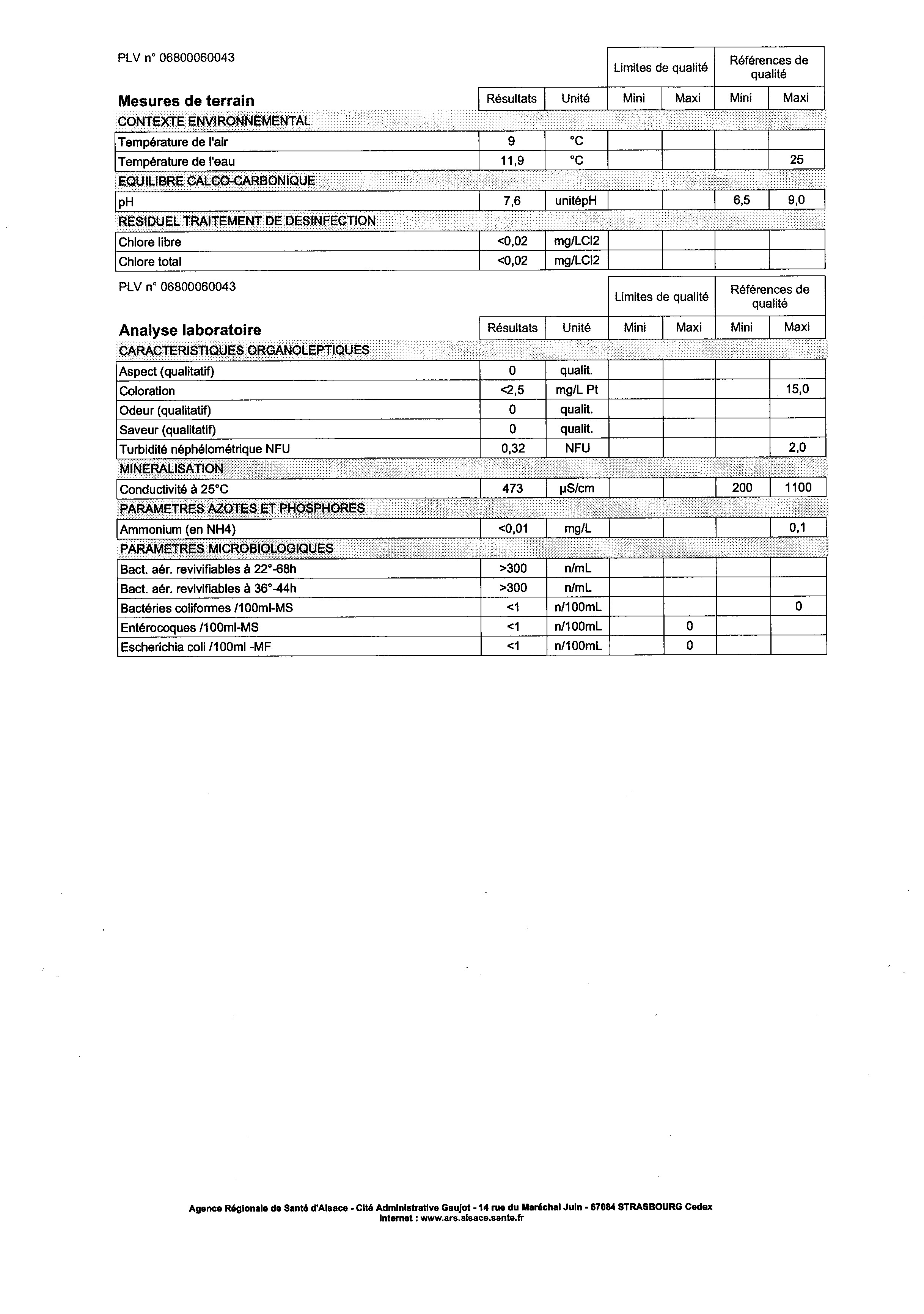 Vous êtes ici : Accueil Mairie Affichage public Annexes affichage public 2014 Rapport d'analyse d'eau potable du 22.04.2014 (1er)
