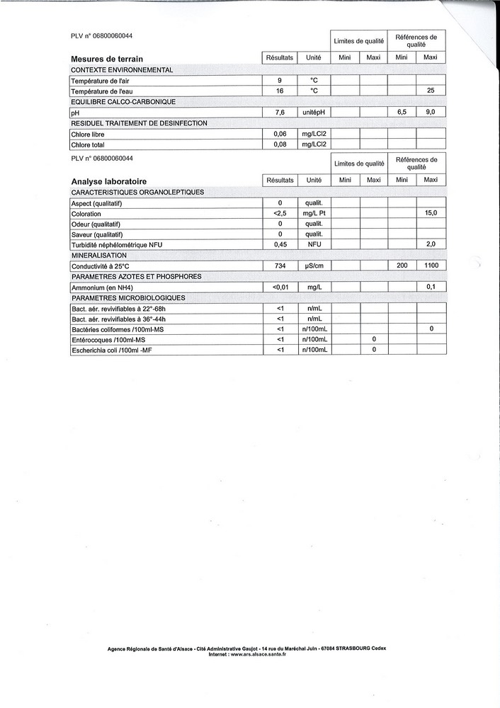 Rapport d'analyse d'eau potable du 22.04.2014 (2ème)