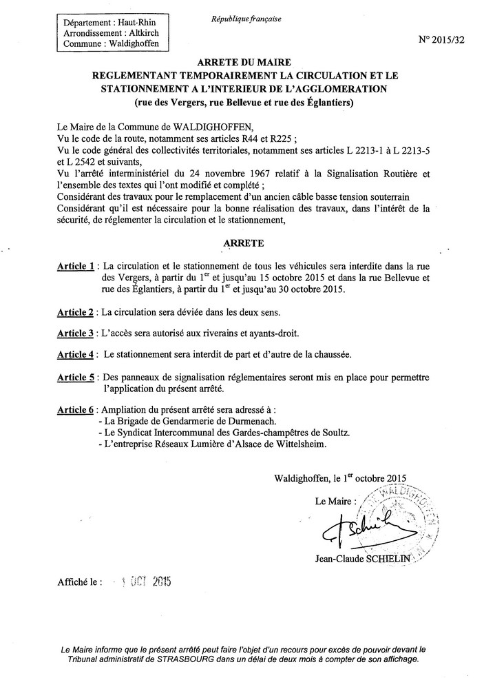 Arrêté réglementant la circulation rue des Vergers, rue Bellevue et rue des Egantiers