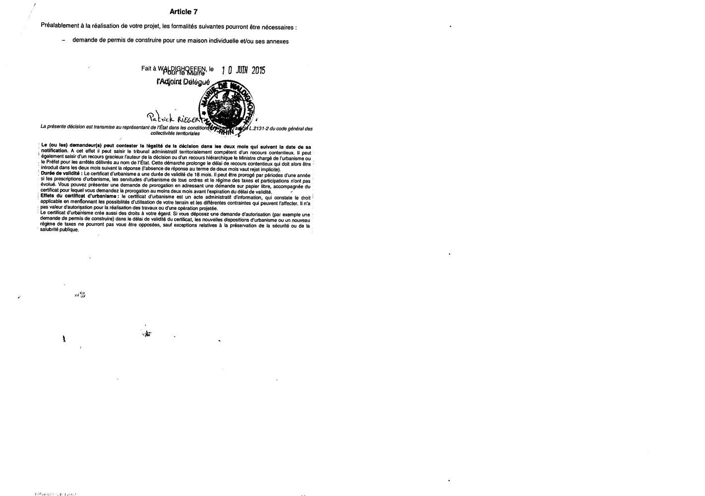 Certificat d'urbanisme délivré à Maître Catherine BAEUMLIN-ANDELFINGER, notaire