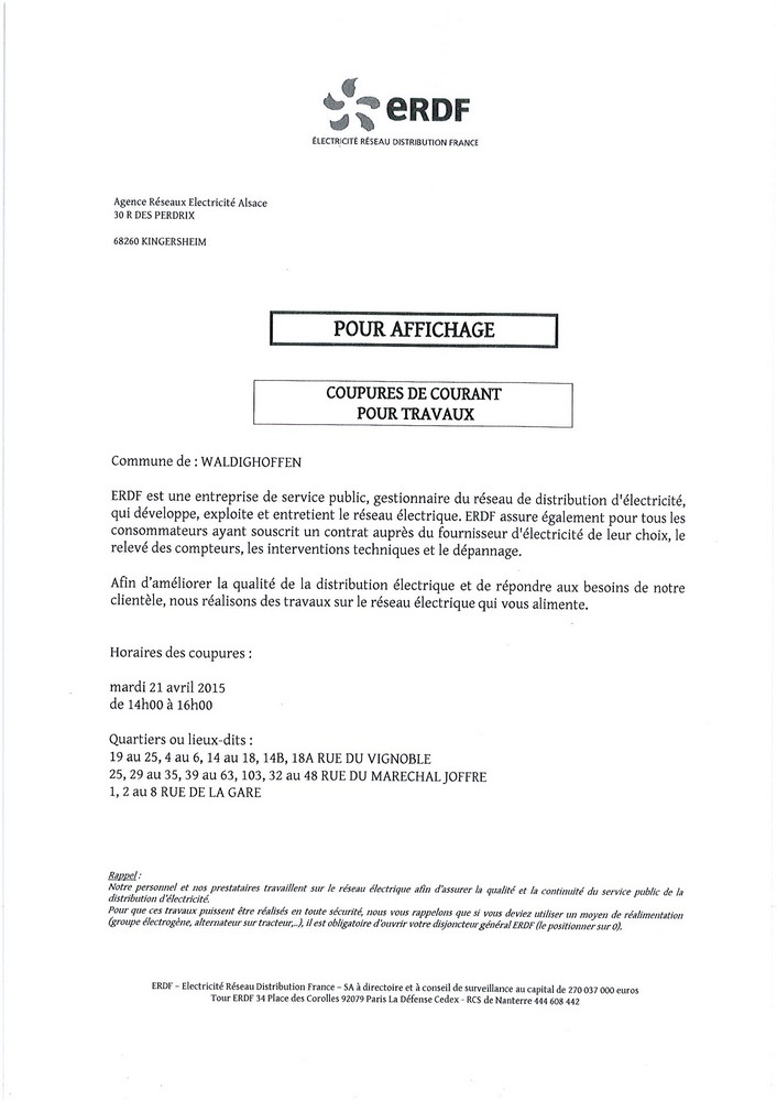Vous êtes ici : Accueil Mairie Affichage public Annexes affichage public 2015 Coupure de courant - mardi 21 avril 2015