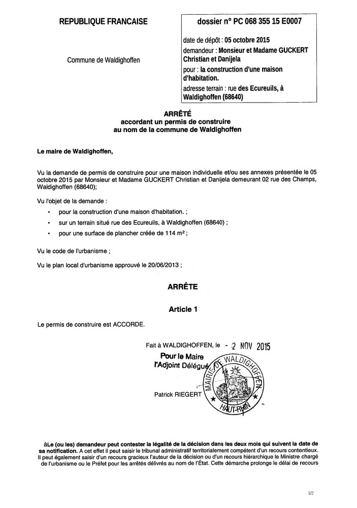 Décision à la demande de construire de M. et Mme GUCKERT Christian