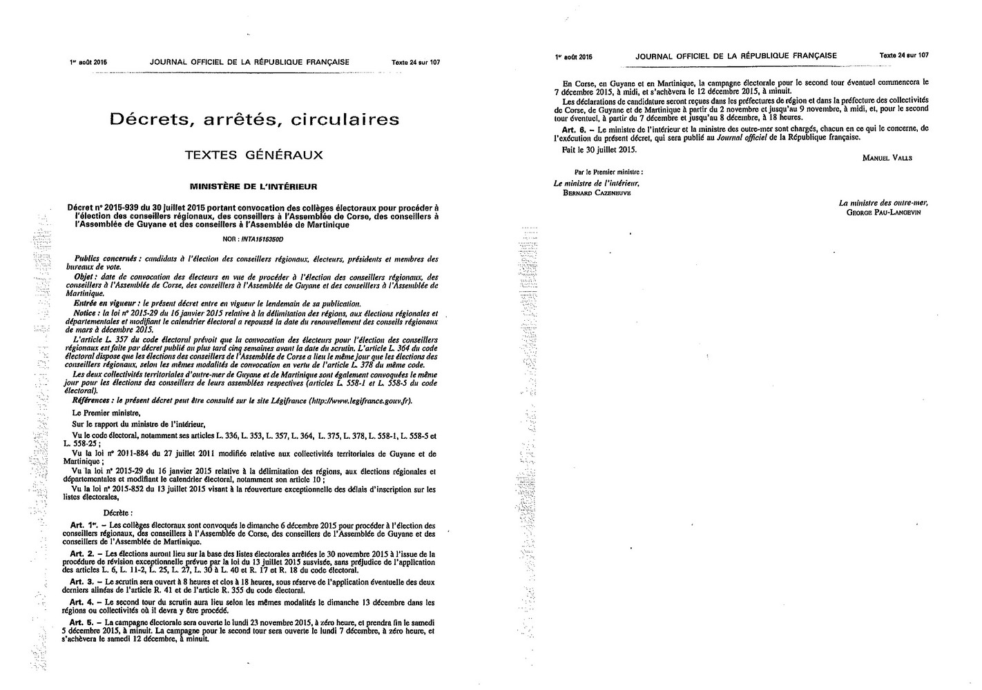 Vous êtes ici : Accueil Mairie Affichage public Annexes affichage public 2015 Décret portant convocation des collèges électoraux