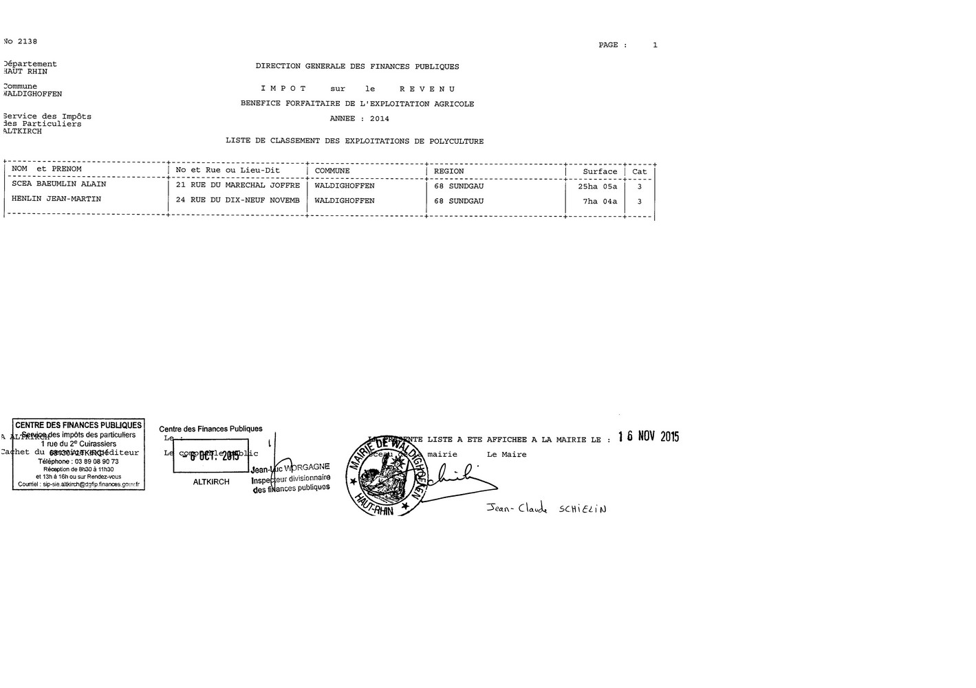 Vous êtes ici : Accueil Mairie Affichage public Annexes affichage public 2015 Exploitation de polyculture - année 2014