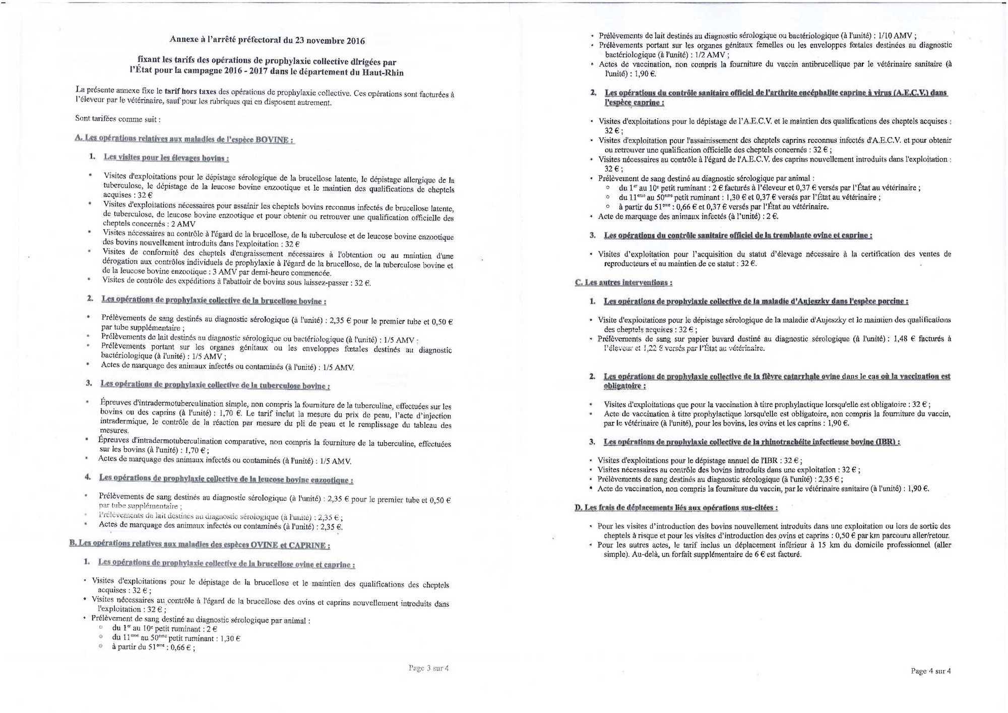 Vous êtes ici : Accueil Mairie Affichage public Annexes affichage public 2016 Annexe Arrêté prefectoral- tarif des opérations de prophylaxie
