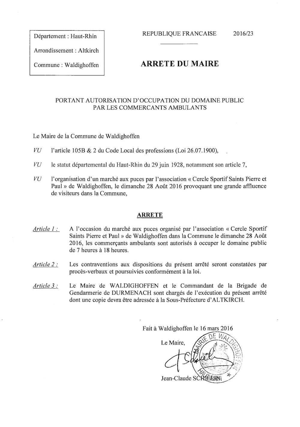Arrêté portant autorisation d'occupation du domaine publique - marché aux puces