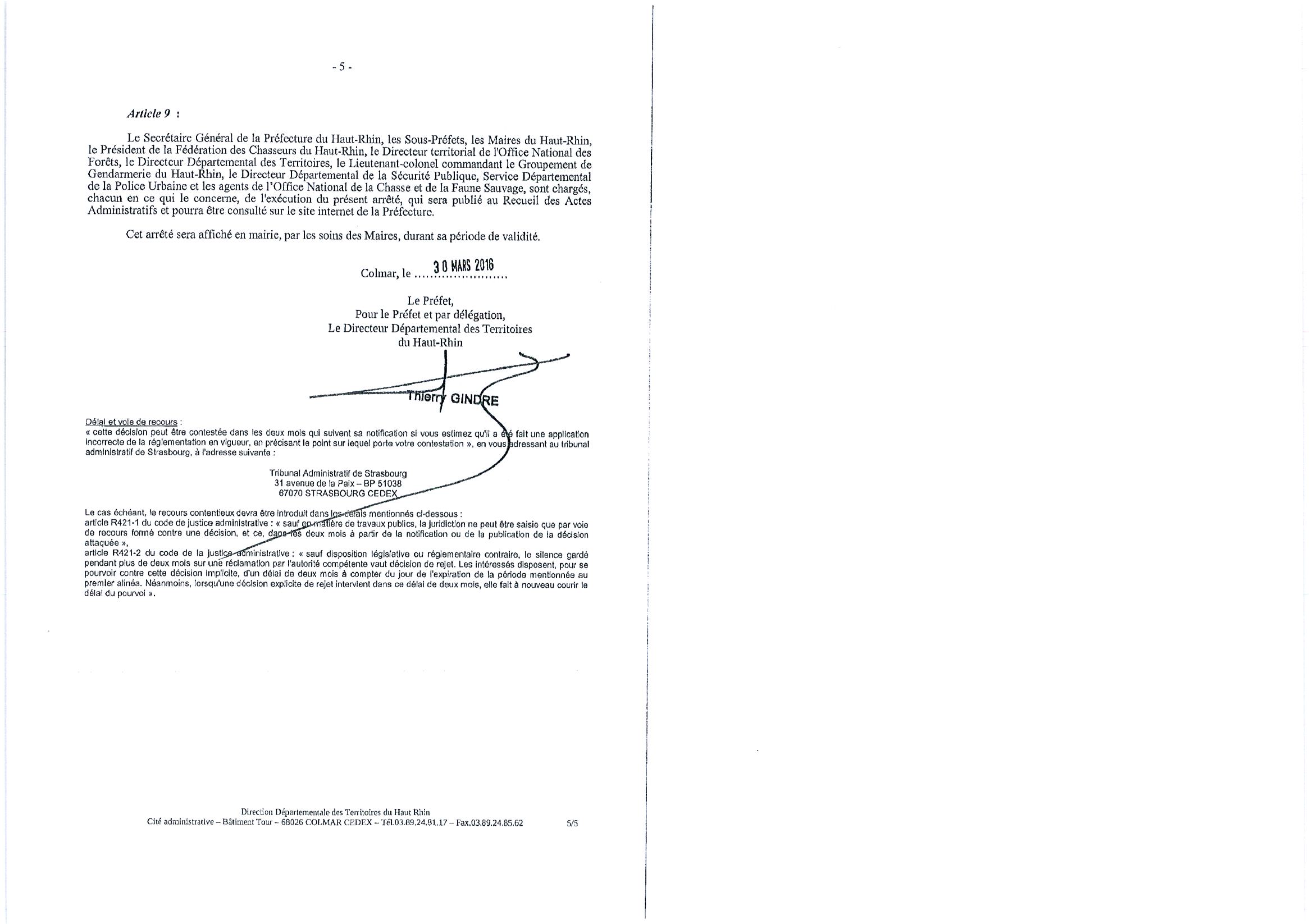 Vous êtes ici : Accueil Mairie Affichage public Annexes affichage public 2016 Arrêté préfectoral - chasse