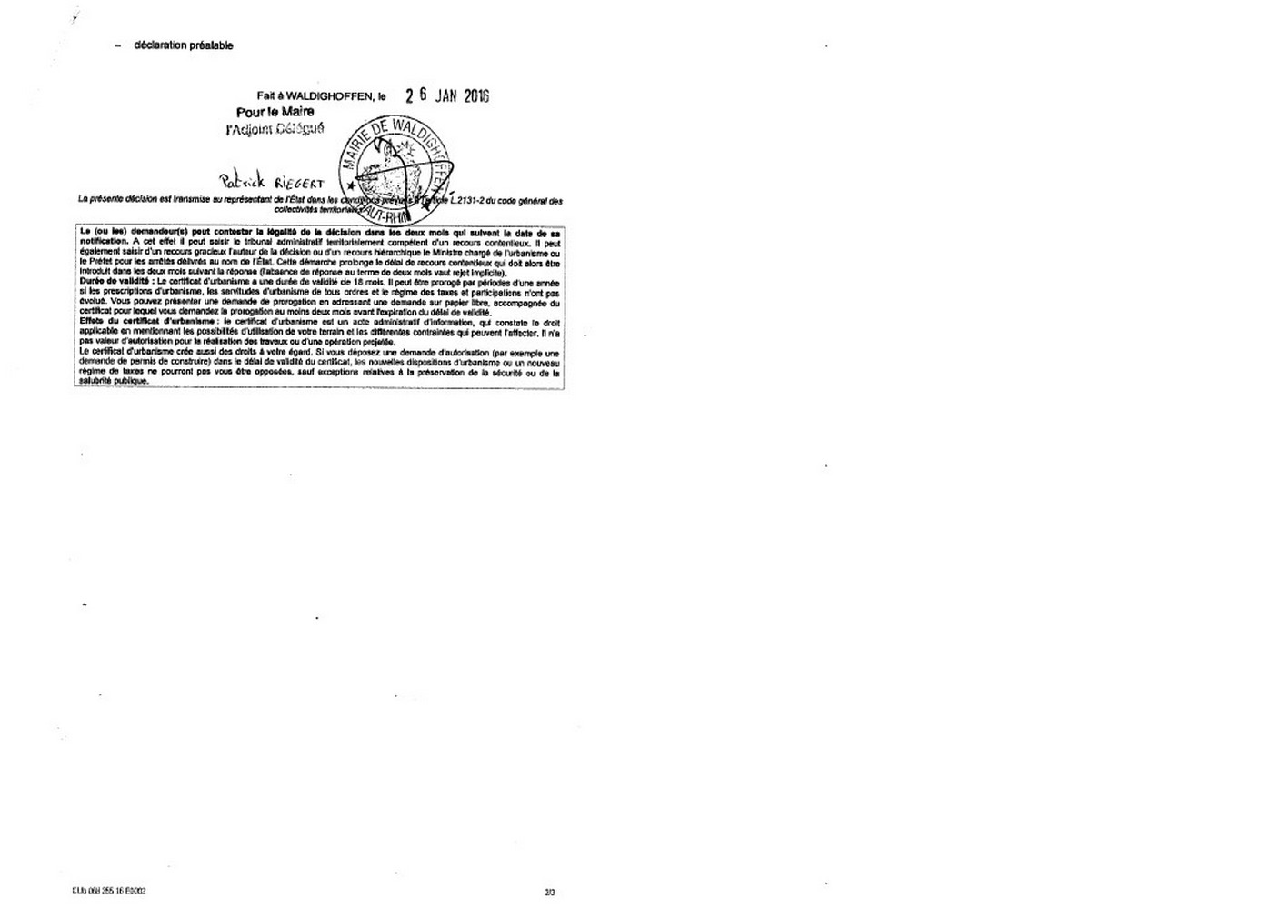 Certificat d'urbanisme délivré à Maître STEHLIN, notaire