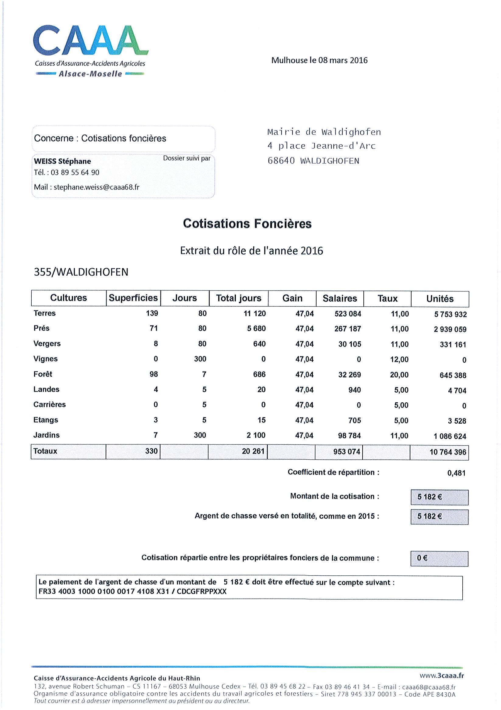 Cotisations foncières 2016