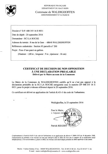 Vous êtes ici : Accueil Mairie Affichage public Annexes affichage public 2016 Décision à la déclaration préalable de la SCI LA ROCHE