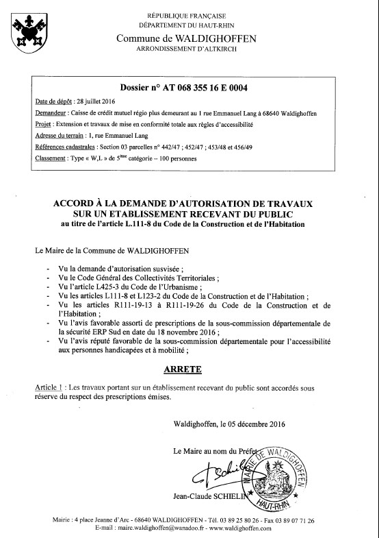 Accord à la demande d'autorisation de travaux déposée par la caisse de crédit mutuel régio plus