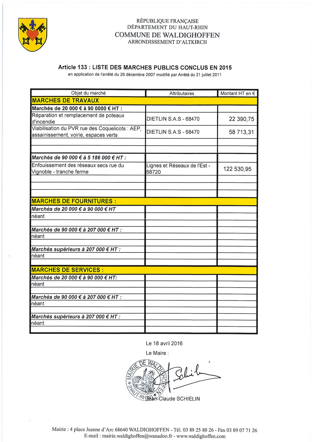 Vous êtes ici : Accueil Mairie Affichage public Annexes affichage public 2016 liste des marchés publics conclus en 2015