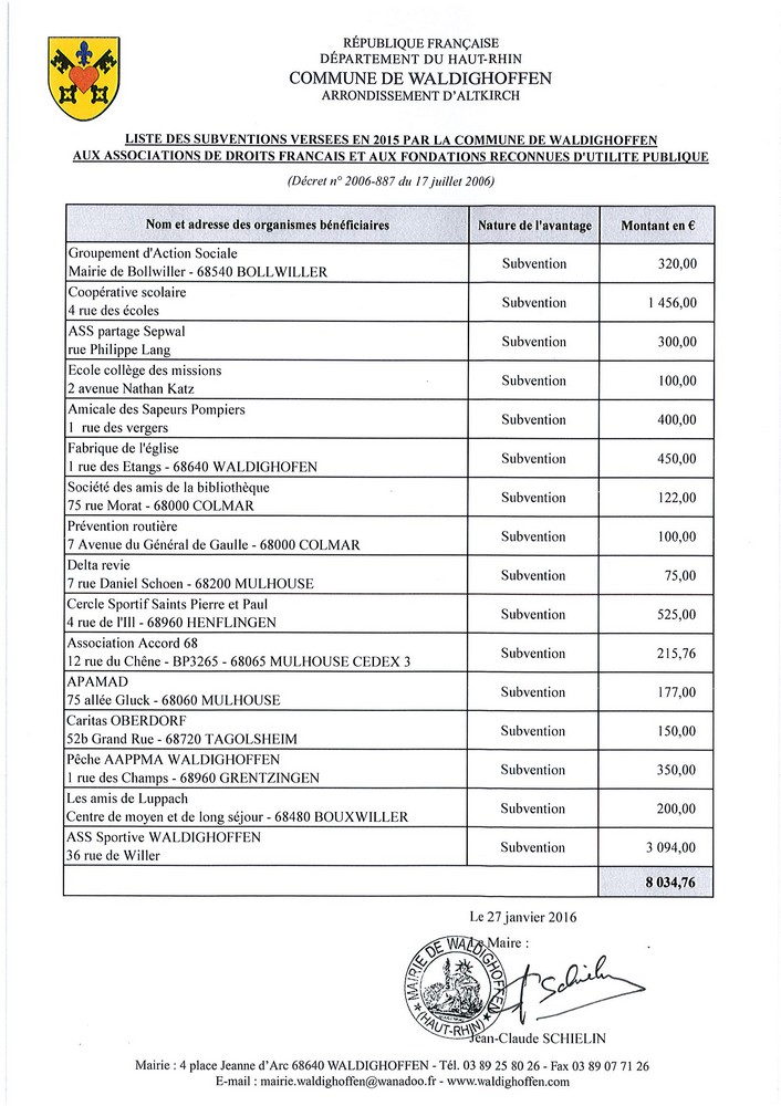 Vous êtes ici : Accueil Mairie Affichage public Annexes affichage public 2016 Subventions versés par la Commune en 2015