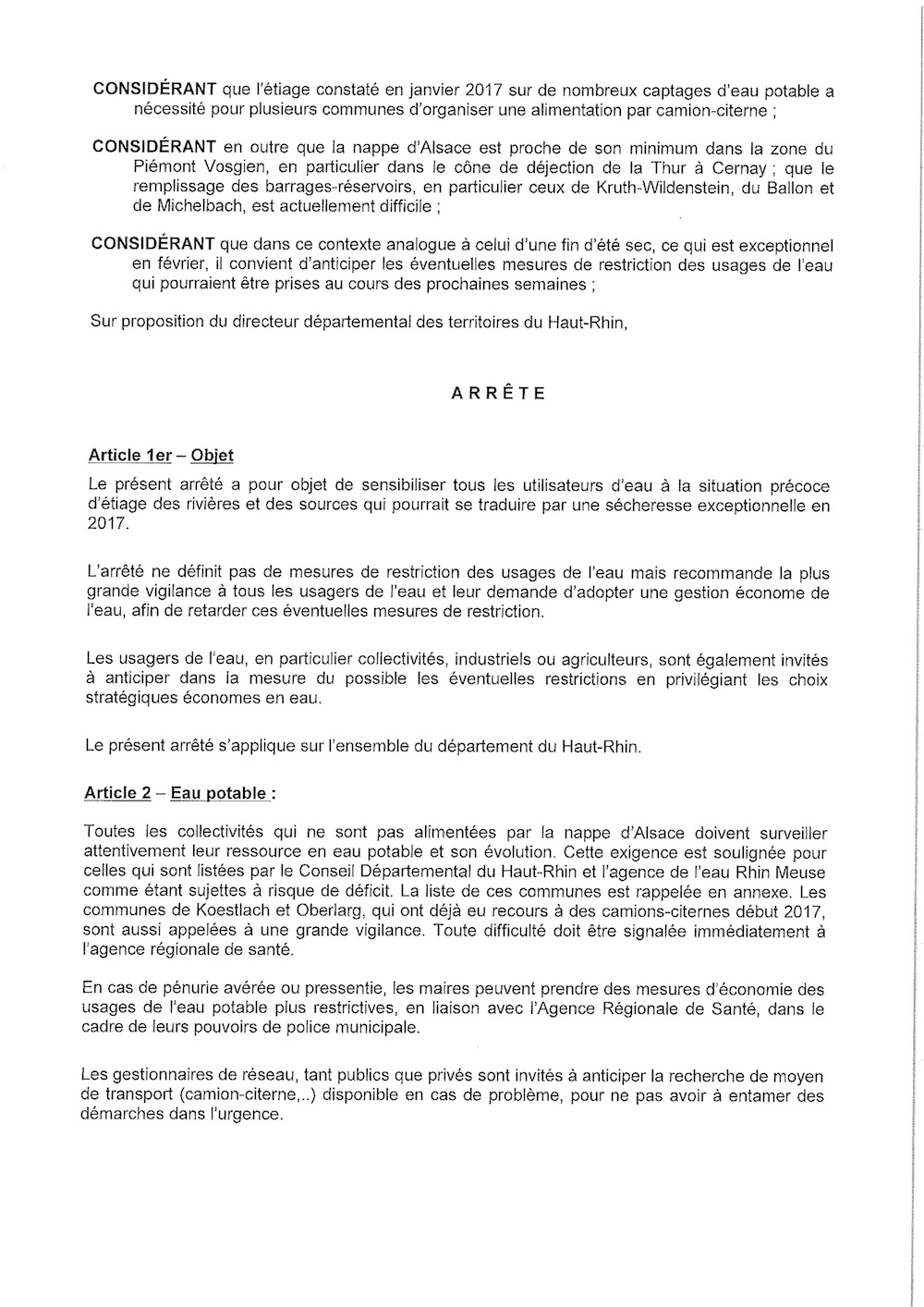 Arrêté préfectoral plaçant le Haut-Rhin en situation de vigilance sécheresse 2/4