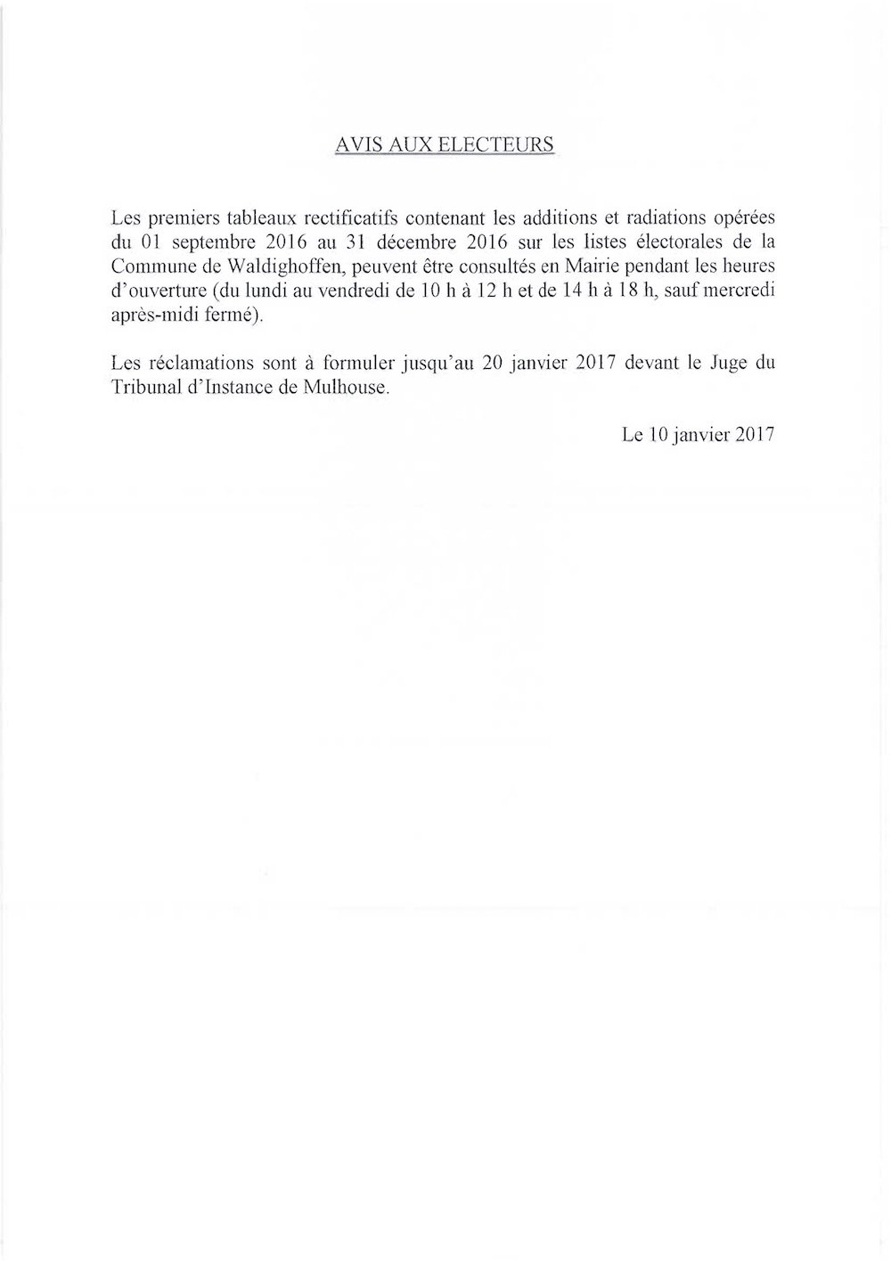 Avis aux électeurs de mise à disposition des 1er tableaux rectificatifs