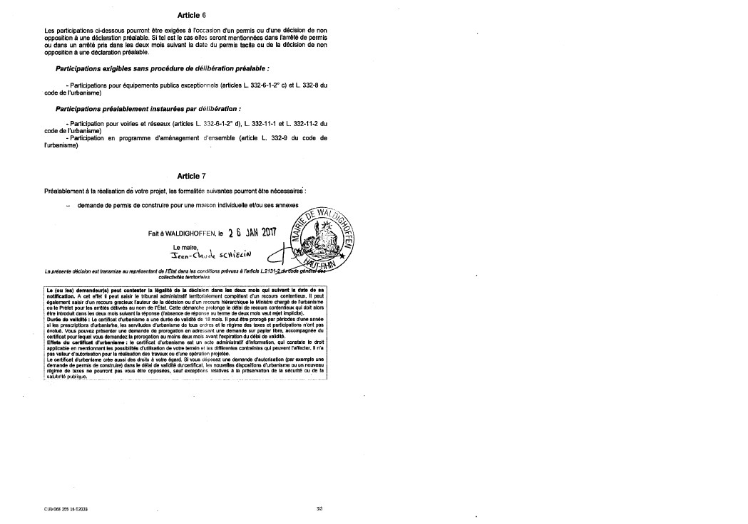 Vous êtes ici : Accueil Mairie Affichage public Annexes affichage public 2017 Certificat d'urbanisme opérationnel délivré à M. FRELECHOUX Maurice