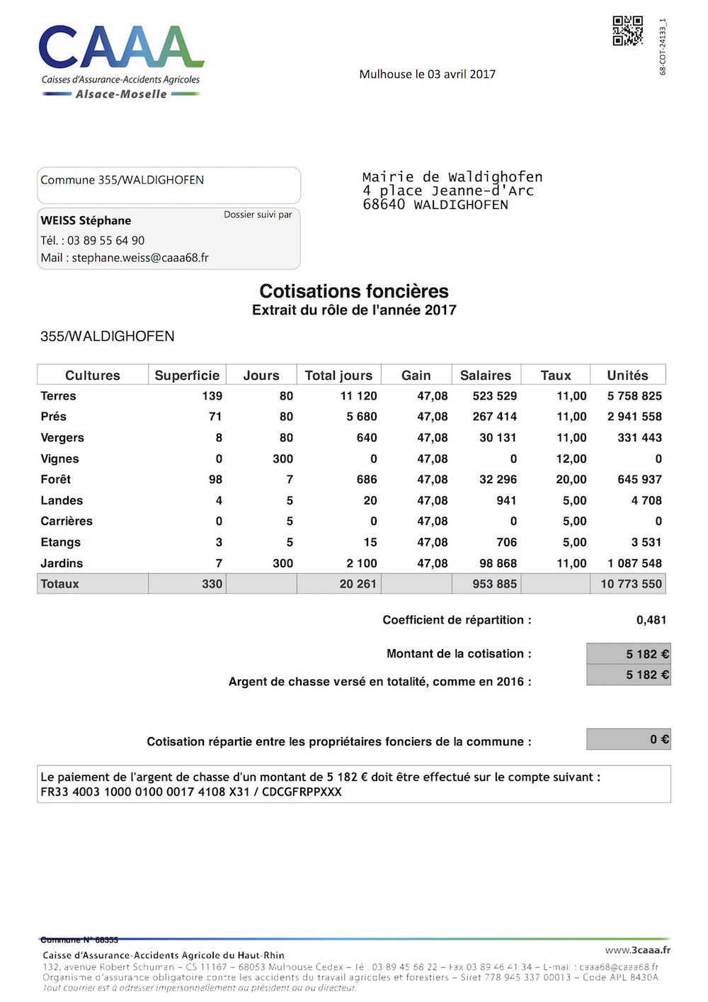 Extrait du rôle des cotisations foncières pour l'année 2017