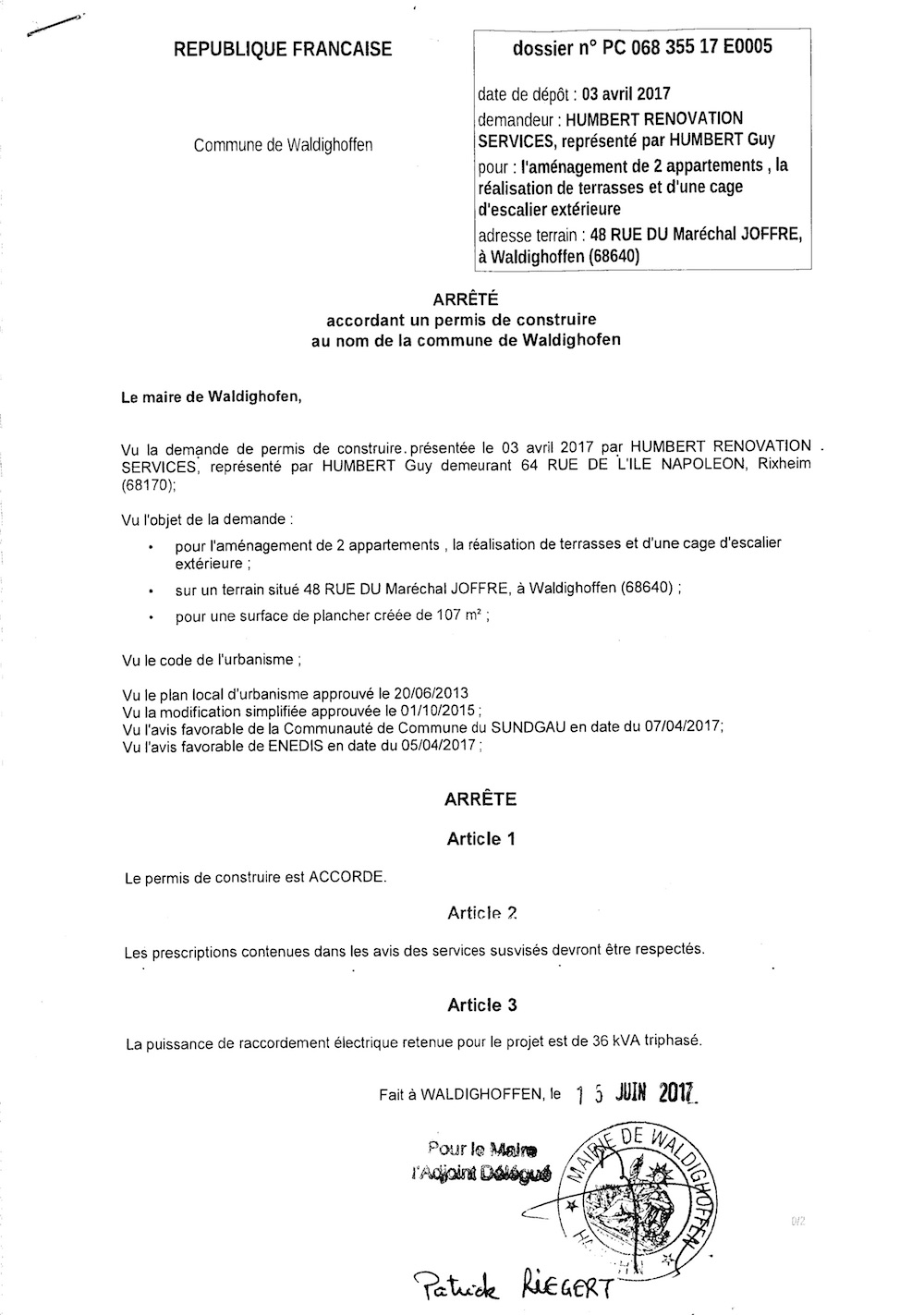 Décision à la demande de construire de HUMBERT RENOVATION SERVICES