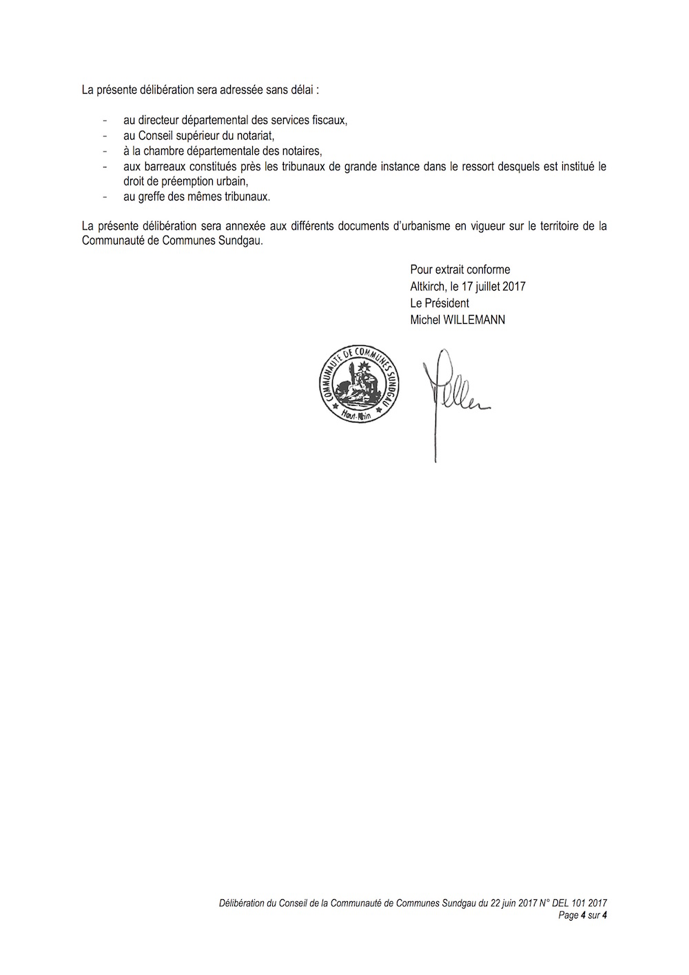 Délibération 101 2017 - Extrait du registre des délibération du conseil communautaire