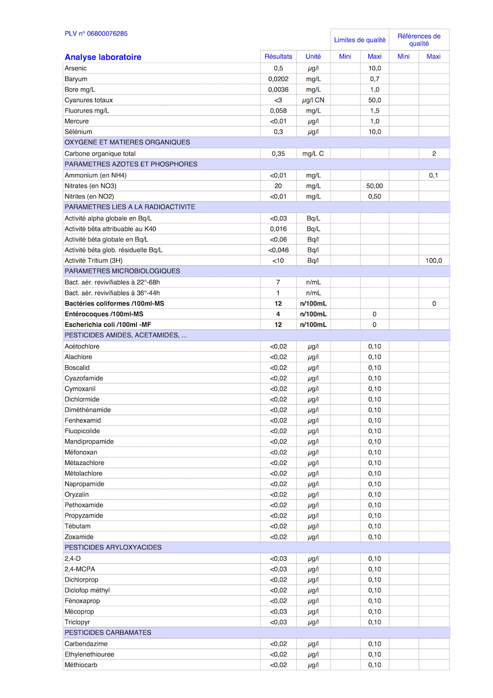 Rapport d'analyse d'eau potable 3/6
