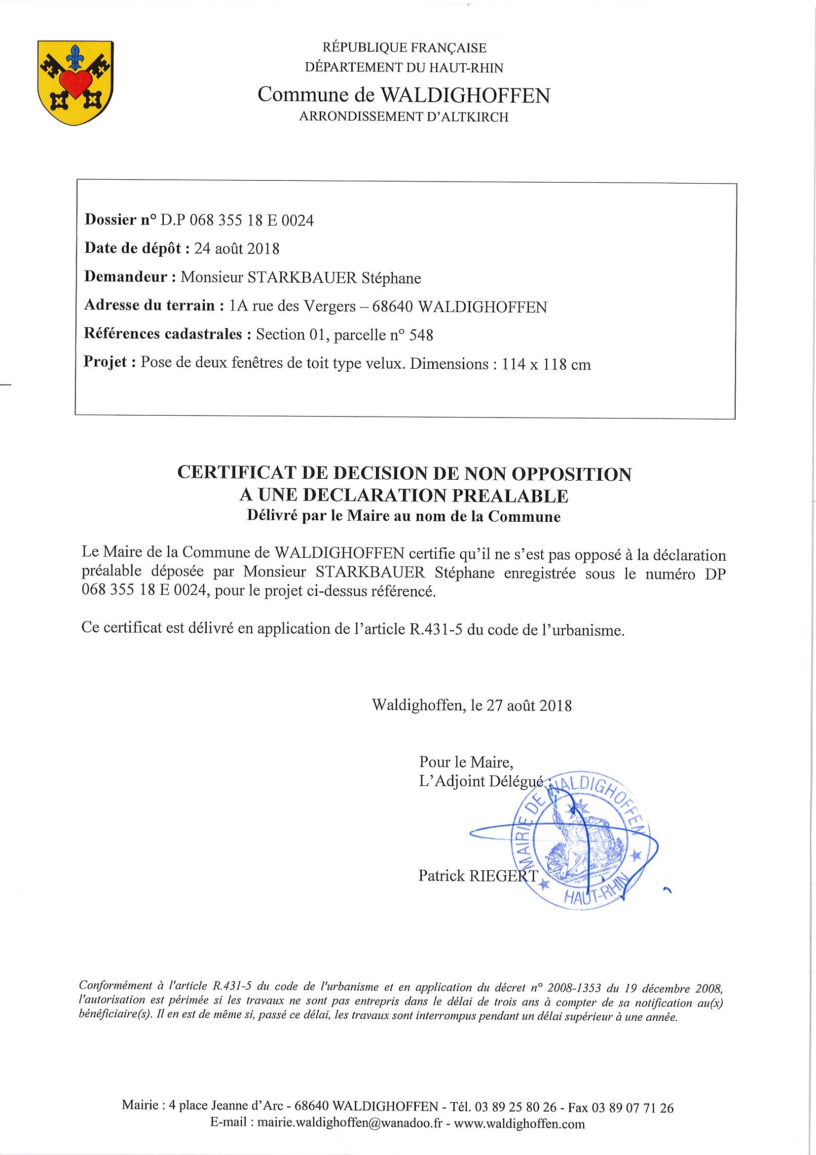 Accord à la demande d'autorisation de travaux de M. Starkbauer Stéphane