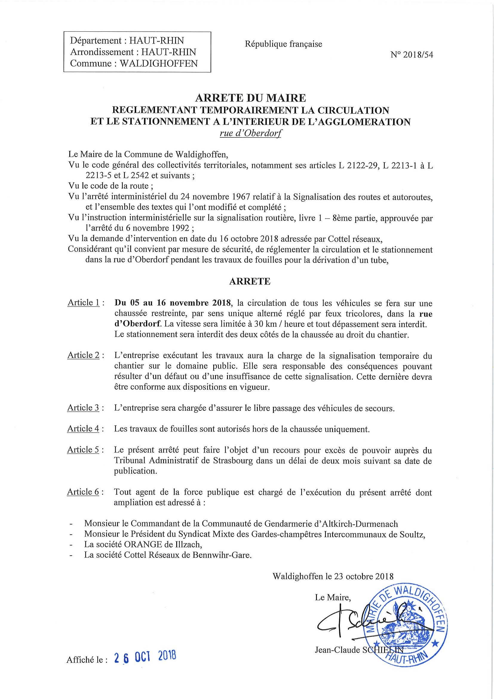 Vous êtes ici : Accueil Mairie Affichage public Annexes affichage public 2018 Arrêté du Maire : circulation rue d'Oberdorf