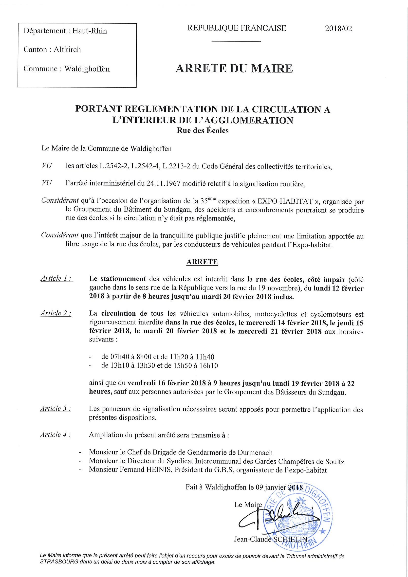 Arrêté réglementant la circulation et le stationnement dans la rue des écoles