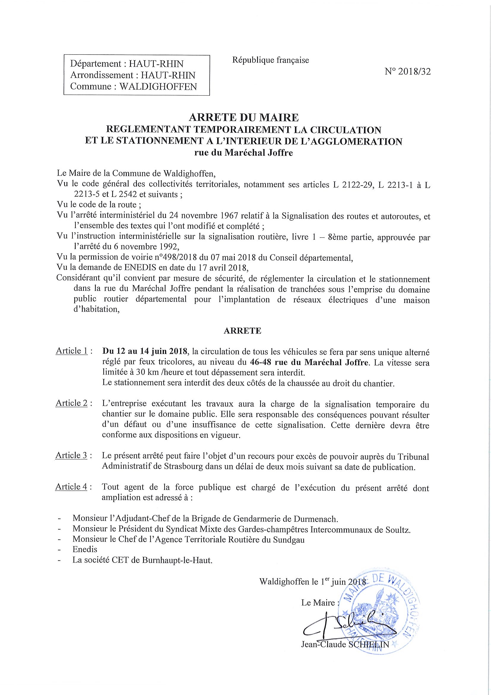 Arrêté réglementant la circulation et le stationnement rue du Maréchal Joffre