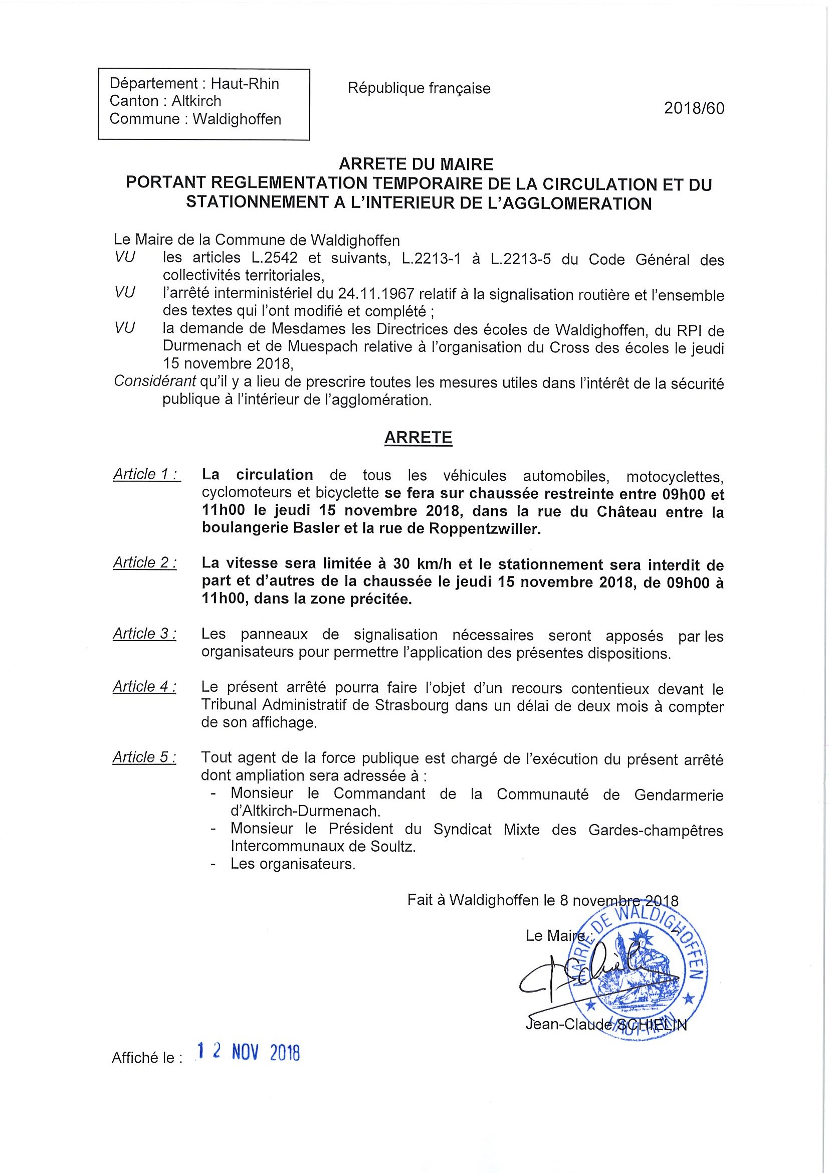 Arrêté réglementant la circulation et le stationnnement dans la rue du Château